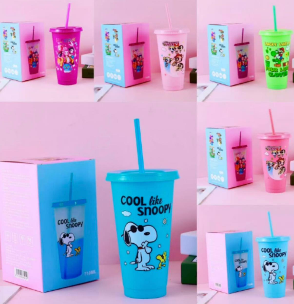 Vaso Con Tapa Y Popote De Personajes
